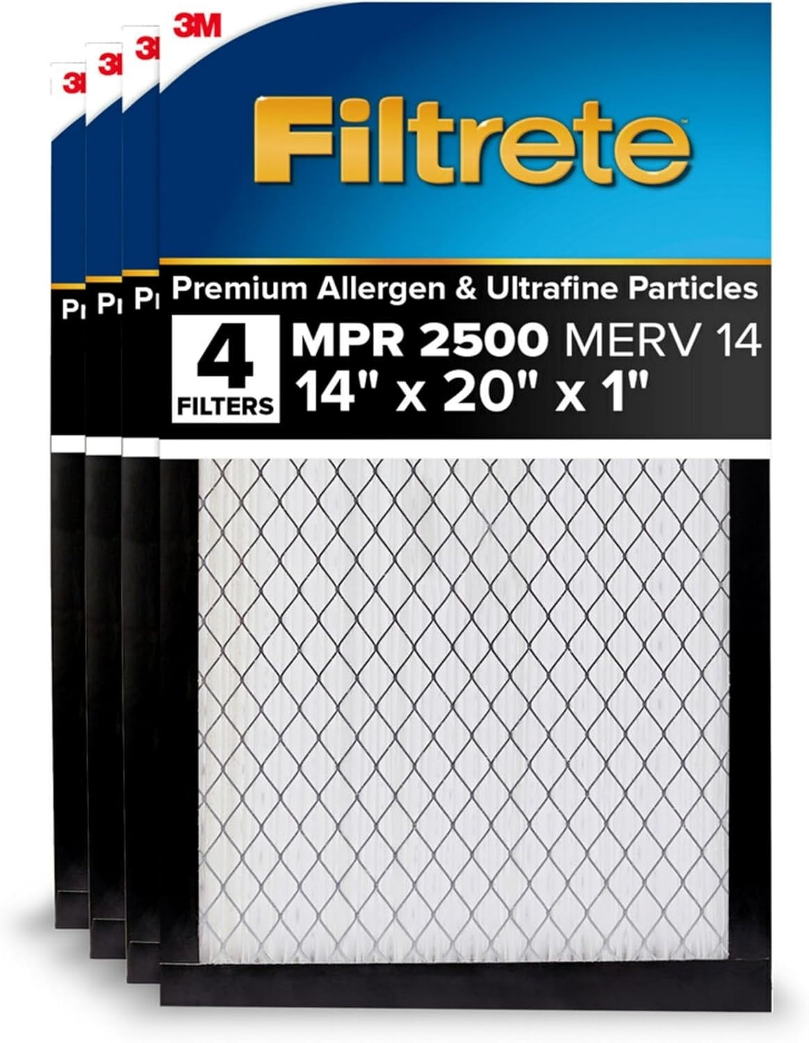 Filtrete 14x20x1" AC Furnace Air Filter, MERV 14, MPR 2500, High Performance Premium Allergen, Ultrafine Particles, Bacteria & Virus Filter, CERTIFIED Asthma & Allergy Friendly, 4-Pack