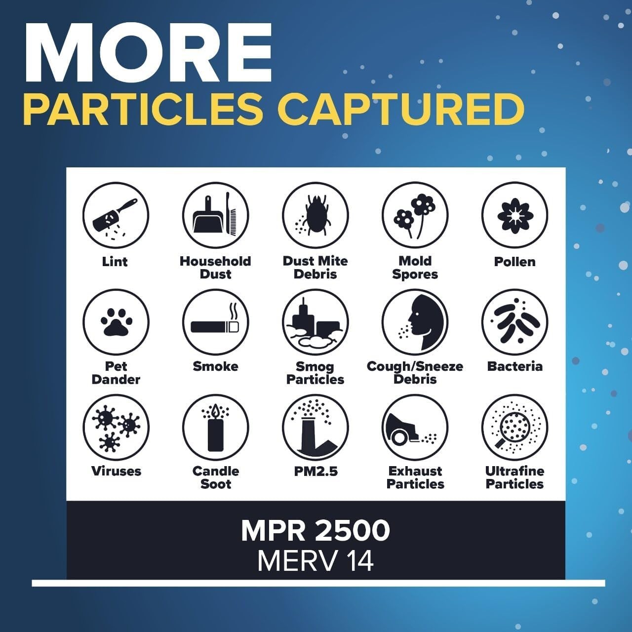 - COUNTLESS MICROPARTICLES: With a 2500 MPR and MERV 14 rating, as well as a 77% small particle capture rate (1), your Filtrete Filter will help capture many microparticles from the air passing through it