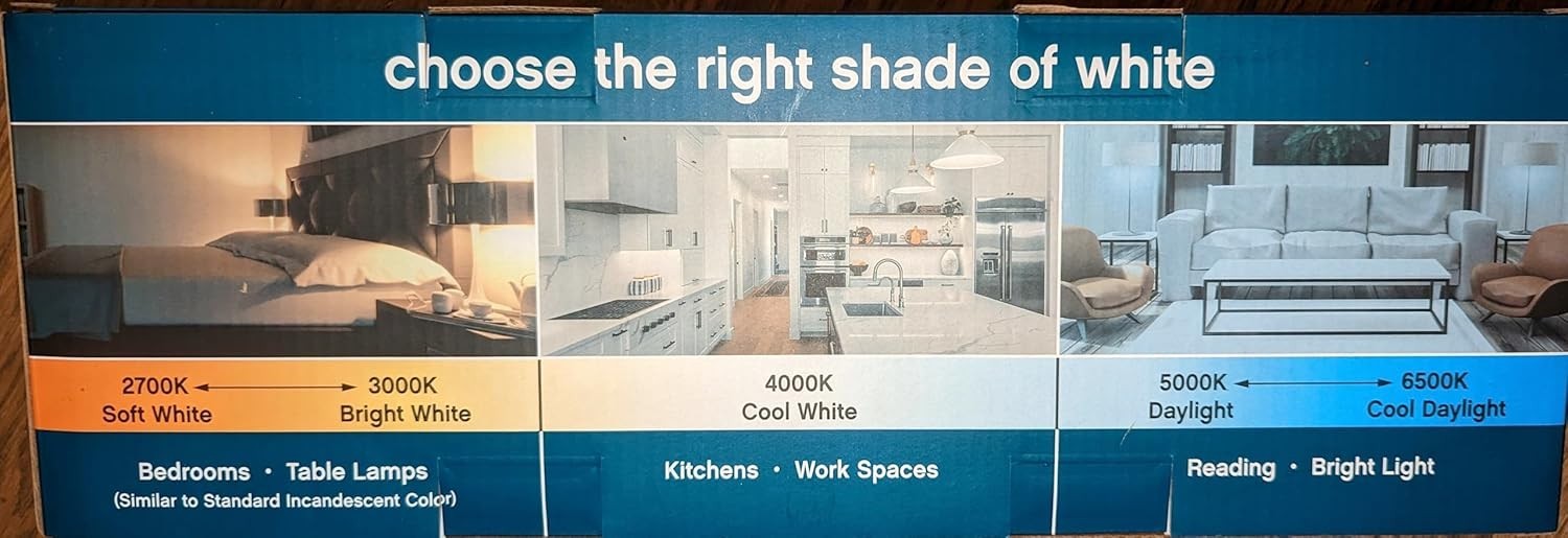 - FIVE SELECTABLE COLOR TEMPERATURES : Choose the color temperature that sets the mood for the room you are in among 2700K Soft Whit, 3000K Bright White, 4000K Cool White, 5000K Daylight & 6500K Cool Daylight