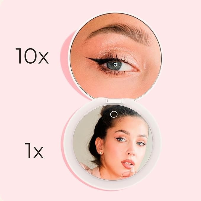 - Dual Magnification: Two-sided 1x / 10x magnification ideal for applying makeup and tweezing