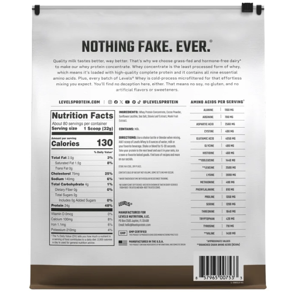Levels - Grass Fed - Whey Protein - Protein Powder - Double Chocolate - 5.64 lbs